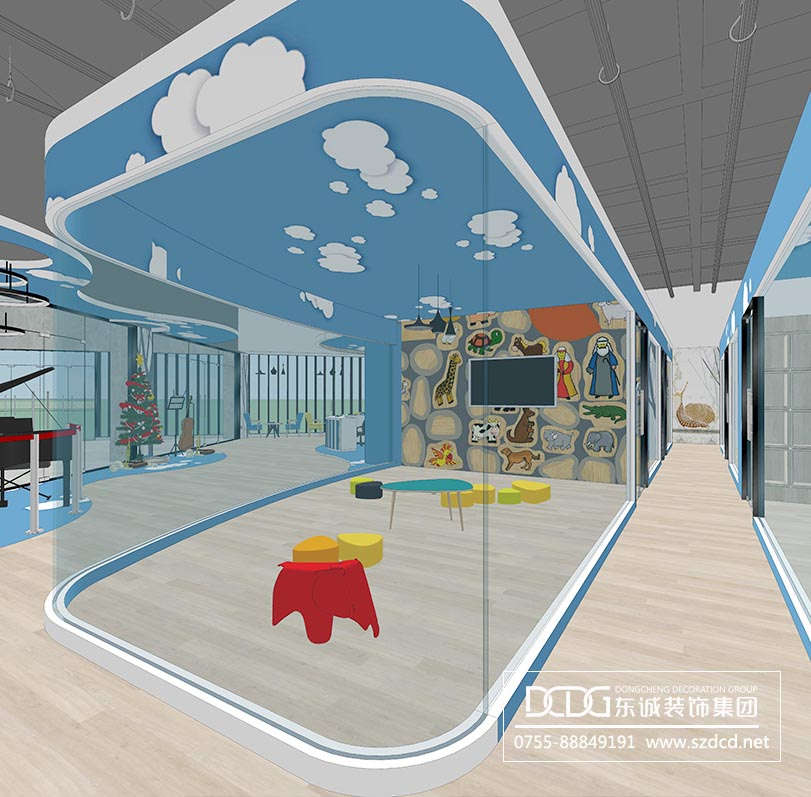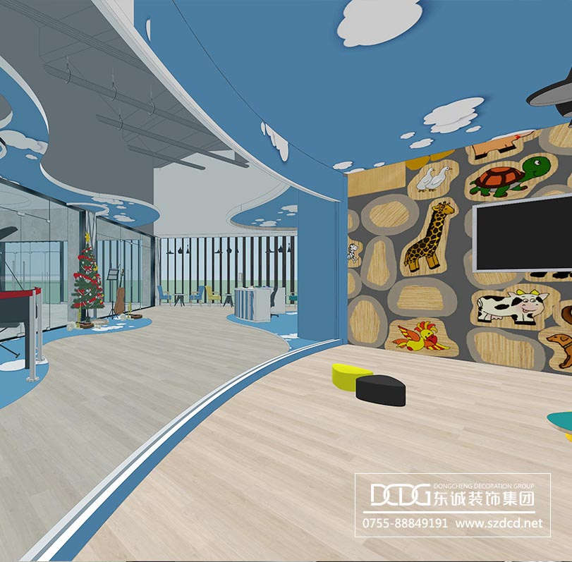 項目內容:本案為少兒藝術教育中心的設計,從空間環境的整體設計規劃中,兼顧視覺形象的表現和其空間環境的舒適合拍,審美欣賞的同時滿足幼兒的心理特征,從環境的角度對幼兒實施更加有效的教育。